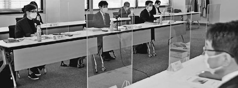![]() (写真)入管側から聞き取りする(左から)本村、山添、(1人おいて)藤野の各氏=25日、名古屋市港区 |