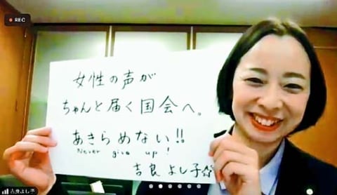 日本共産党の吉良よし子参院議員は3日、女性活躍を進める政治家の考えを若者に知ってもらおうと、ジェンダーやあらゆる差別、暴力をなくすために活動している一般社団法人ボイス・アップ・ジャパンが企画・主催したオンラインのイベントに参加。候補者活動や議員活動を振り返りつつ、女性の政治参画を推進するための課題などを語り合いました。