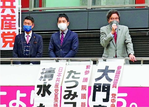 たつみ氏は「消費税を5%に引き下げてこそコロナに苦しむ国民を応援できる」と強調。改憲をめざす自公と維新が占める参院大阪選挙区で「“憲法を変えたらあかん”という声を私に託してください」と語りました。