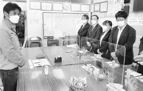 沖縄県名護市長選(来年1月16日告示、同23日投票)の予定候補で、同市辺野古の米軍新基地建設阻止を目指す岸本ようへい氏(48)の市内の事務所を11日、全国組織の民主6団体の代表らが訪問し、岸本氏と懇談しました。代表らは必勝に向けた奮闘を激励し、全国の力で支援する決意を表明しました。