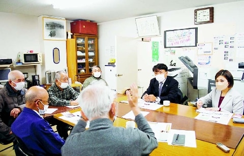 ![]() (写真)原告らから要望や取り組みを聞く(向こう側右から)中村、にひ両氏=17日、広島市 |