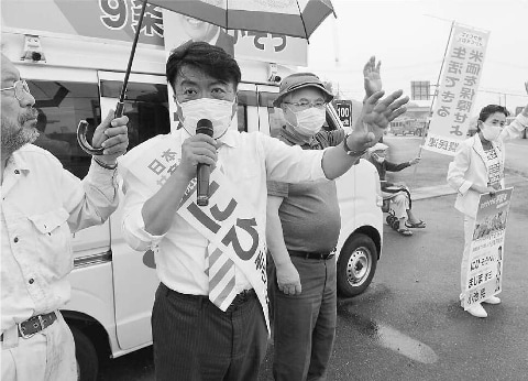にひ氏は、国連憲章に基づく国際平和の秩序の回復や、憲法9条をいかした外交のためにも議席を取り戻したいと表明。岸田首相も「相当な増額」という軍事費2倍化の動きについて、暮らしを犠牲にするものと批判し「暮らしを守るのも戦争を止めるのも民主主義の力です。比例5議席を勝ち取らせてほしい」と訴えました。