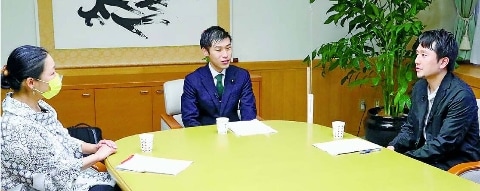 ![]() (写真)「文化のつどい」で対談する(右から)西原、山添両氏。左は司会の飯原氏 |