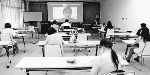 ![]() (写真)視聴する参加者ら=18日、和歌山市 |