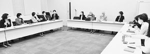 ![]() (写真)超党派女性議員による「クオータ制実現に向けての勉強会」で発言する田村智子参院議員(左から3人目)=19日、衆院第2議員会館 |