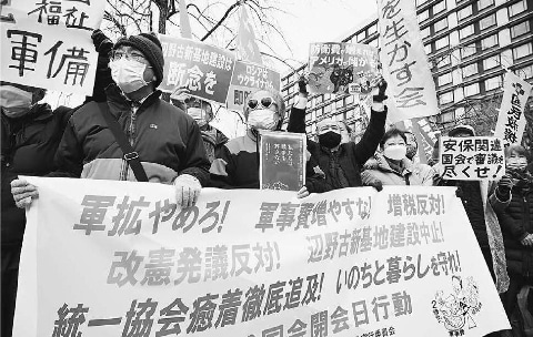 ![]() (写真)大軍拡、大増税に反対しアピールする人たち=23日、衆院第2議員会館前 |