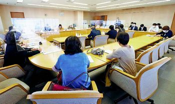![]() (写真)平和委員会など4団体が行った市との懇談会=2022年10月26日、埼玉県・上尾市議会全員協議会室(上尾市平和委員会提供) |