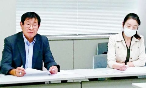 ![]() (写真)記者会見する千葉県保険医協会の石毛清雄理事(左)と吉川恵子事務局長=20日、千葉市内 |