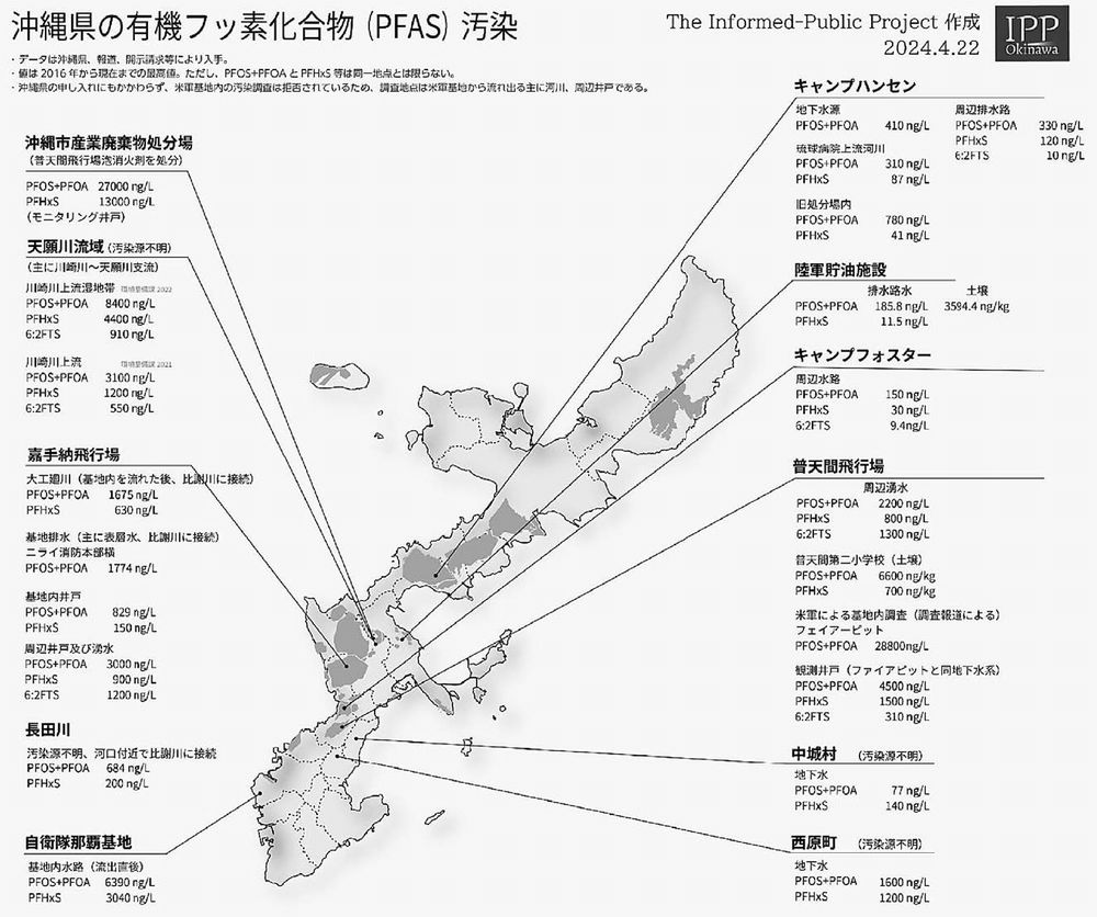 ![]() ⅠPPが沖縄のPFAS汚染状況についてまとめたマップ |