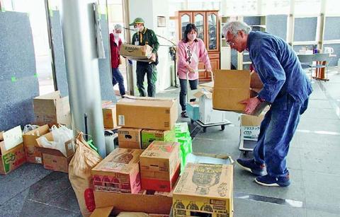 ![]() (写真)支援物資をセンターに運び込む日本共産党福井県委員会から応援にきた人たち=4月4日、石川県羽咋市 |