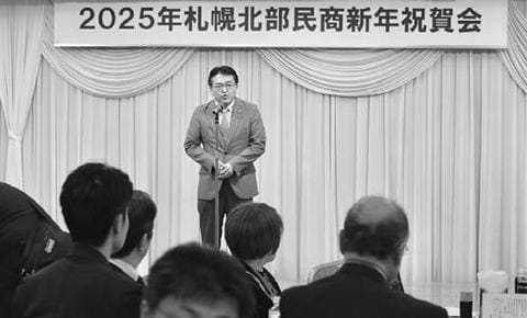 北海道札幌北部民主商工会は18日、札幌市内で「新年祝賀会」を開き、会員や家族が新年と創立50周年を祝い合いました。