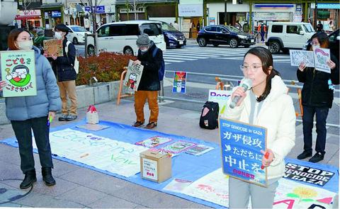 アピール行動はイスラエルの攻撃が始まった2023年10月以降、ほぼ毎週実施。この日も多くの外国人観光客らから注目を集めていました。