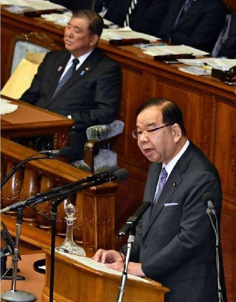 ![]() (写真)質問する志位和夫議長。奥は石破茂首相=13日、衆院本会議 |