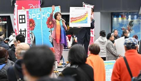日本共産党の田村智子委員長は15日、東京・秋葉原駅前で、対話演説に臨みました。田村氏は、石破茂首相が当選1回の自民党衆院議員15人と会合し、1人10万円分の商品券を配布していた問題で、「典型的な裏金」と厳しく批判。「政治活動ではない」という石破首相の言い訳は詭弁(きべん)だとして、真相解明への決意を表明しました。