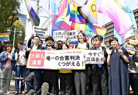 同性どうしの結婚を認めない民法や戸籍法の規定は婚姻の自由などを保障した憲法に違反するとして、京都や香川などに住む同性カップル3組が国を訴えた「結婚の自由をすべての人に」関西訴訟の控訴審判決が25日、大阪高裁でありました。本多久美子裁判長は、同性婚を認めない規定は個人の尊厳を大きく損ない、不合理な差別だとして「違憲」だと判断しました。
