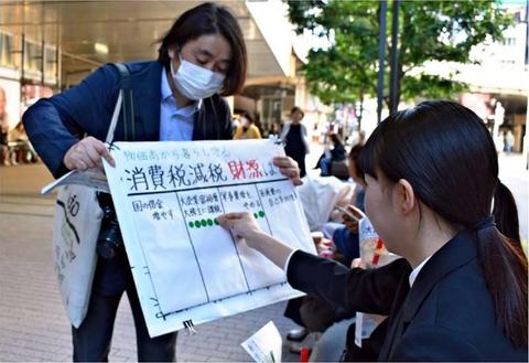 街頭アンケート 共産党消費税減税案に賛同次々