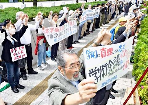 ![]() (写真)学術会議解体法案に反対し、「人間の鎖」でアピールする学者・市民=9日、衆院第2議員会館前 |
