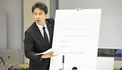 ![]() (写真)政治資金収支報告書の不記載について記者会見で謝罪する都議会自民党の現職都議=1月23日、都庁 |