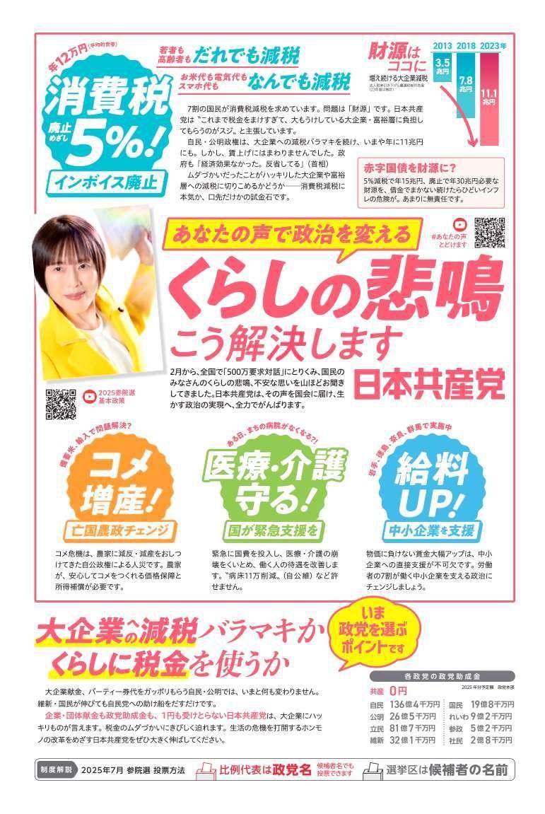 7月3日公示、20日投票とされる参議院選挙にむけた「しんぶん赤旗」6・7月号外(基本ビラ)ができました。
