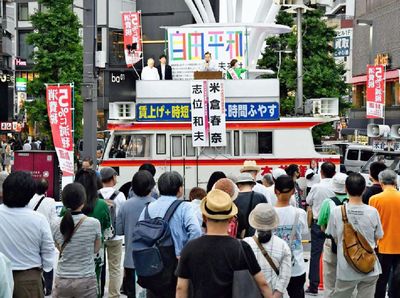 日本共産党の志位和夫議長は20日、東京都議選で豊島区(定数3)から4期目をめざす米倉春奈候補を押し上げようと、大塚駅前に駆けつけ、「当落線上でしのぎを削る大接戦です。最後の最後まで支持・支援を広げに広げていただき、必ず勝利を」と呼び掛けました。