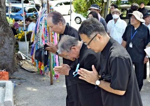 その後、沖縄戦後に県内で初めて建てられた慰霊塔「魂魄(こんぱく)の塔」に祈りをささげ、「ひめゆりの塔」や「白梅の塔」を訪れ、犠牲となった女学生たちを追悼しました。