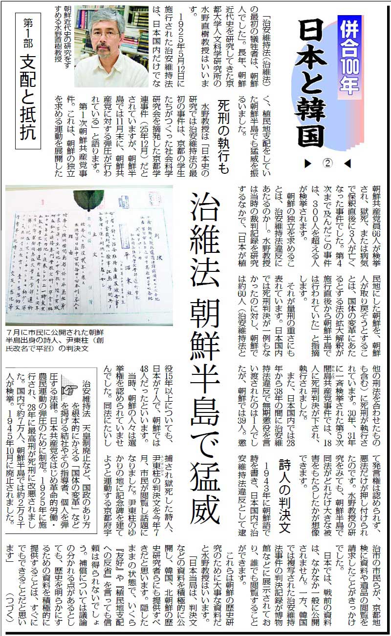 ![]() (写真)「『併合』100年 日本と韓国」の連載記事 |