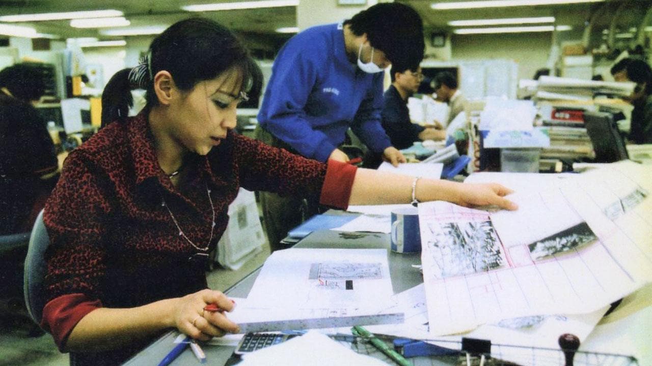 【写真】整理部の仕事風景の一コマ。工場のオペレーターさんに組んでもらっていました。割付を紙に書いていたころ=2001年1月