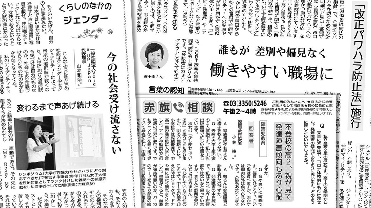 「くらし家庭面」では、ジェンダー平等が党の政策の中心にすわるずっと以前から、一人一人の尊厳を守るための記事を記者が丹念に取材し、記事として提供してきました。