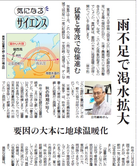 東日本の太平洋側や西日本の広い範囲で記録的な雨不足による渇水傾向が広がり、水道・農業用水の不足が懸念されています。なぜ、このような現象が起きているのでしょうか。専門家は、要因の大本に地球温暖化が深く関わっていると指摘します。(原千拓)