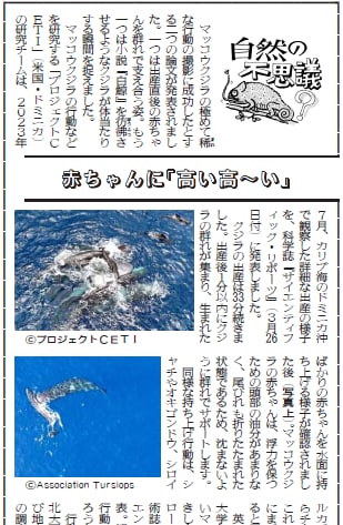 マッコウクジラの極めて稀(まれ)な行動の撮影に成功したとする二つの論文が発表されました。一つは出産直後の赤ちゃんを群れで支え合う姿。もう一つは小説『白鯨』を彷彿(ほうふつ)させるようなクジラが体当たりする瞬間を捉えました。