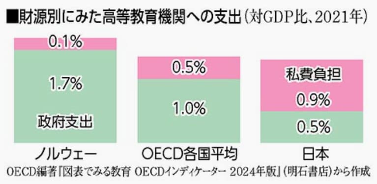 最後に。みんなの中には、学費を稼ぐために長時間働かざるを得ない学生もいるはずだ。日本の学費は、国際的にみて非常に高い。それはなぜだと思う?