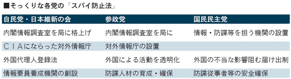 ―各党の「スパイ防止法」案をどう見ますか