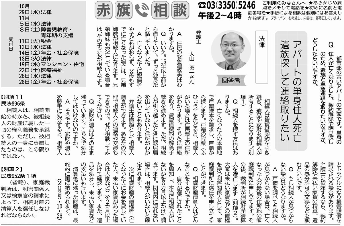 ●10月の日刊紙と日曜版には、次のような相談の記事を掲載しました