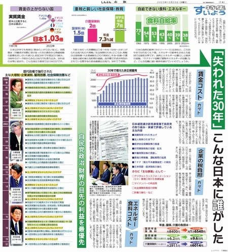 大軍拡や原発回帰など岸田政権が国民の暮らしや平和を顧みない政策の大転換に踏み出しています。その裏に自民党への巨額な企業・団体献金が―。今こそ、その害悪が問われています。(藤沢忠明)