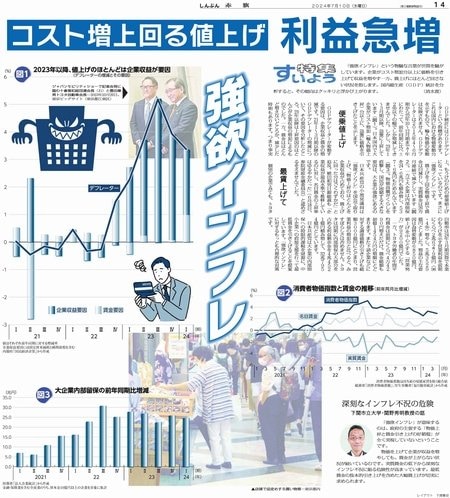 「強欲インフレ」という物騒な言葉が世間を騒がしています。企業がコスト増加分以上に価格を引き上げて収益を増やす一方、賃上げにほとんど回さない状況を指します。国内総生産(GDP)統計を分析すると、その傾向はクッキリと浮かび上がります。(清水渡)