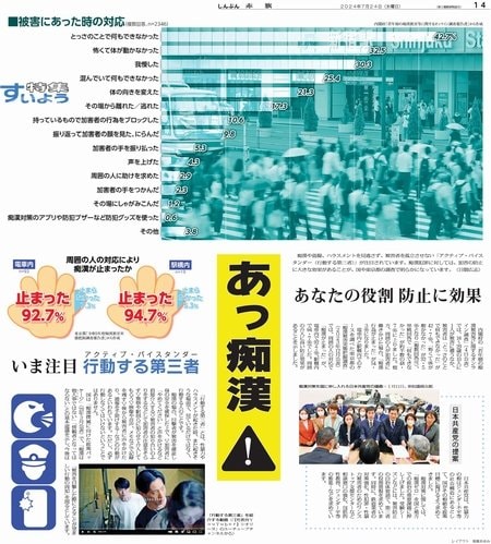 痴漢や盗撮、ハラスメントを見逃さず、被害者を孤立させない「アクティブ・バイスタンダー(行動する第三者)」が注目されています。痴漢犯罪に対しては、加害の防止に大きな効果があることが、国や東京都の調査で明らかになっています。(日隈広志)