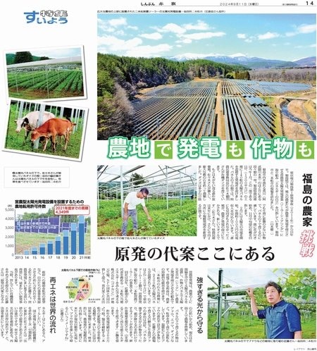 東京電力福島第1原発事故(2011年)から13年半。福島県では、地元の農家たちが農業と発電を両立させる営農型太陽光発電事業(ソーラーシェアリング)に取り組み「エネルギーの自立」を目指しています。福島市と二本松市の現場を訪ねました。(山本健二)