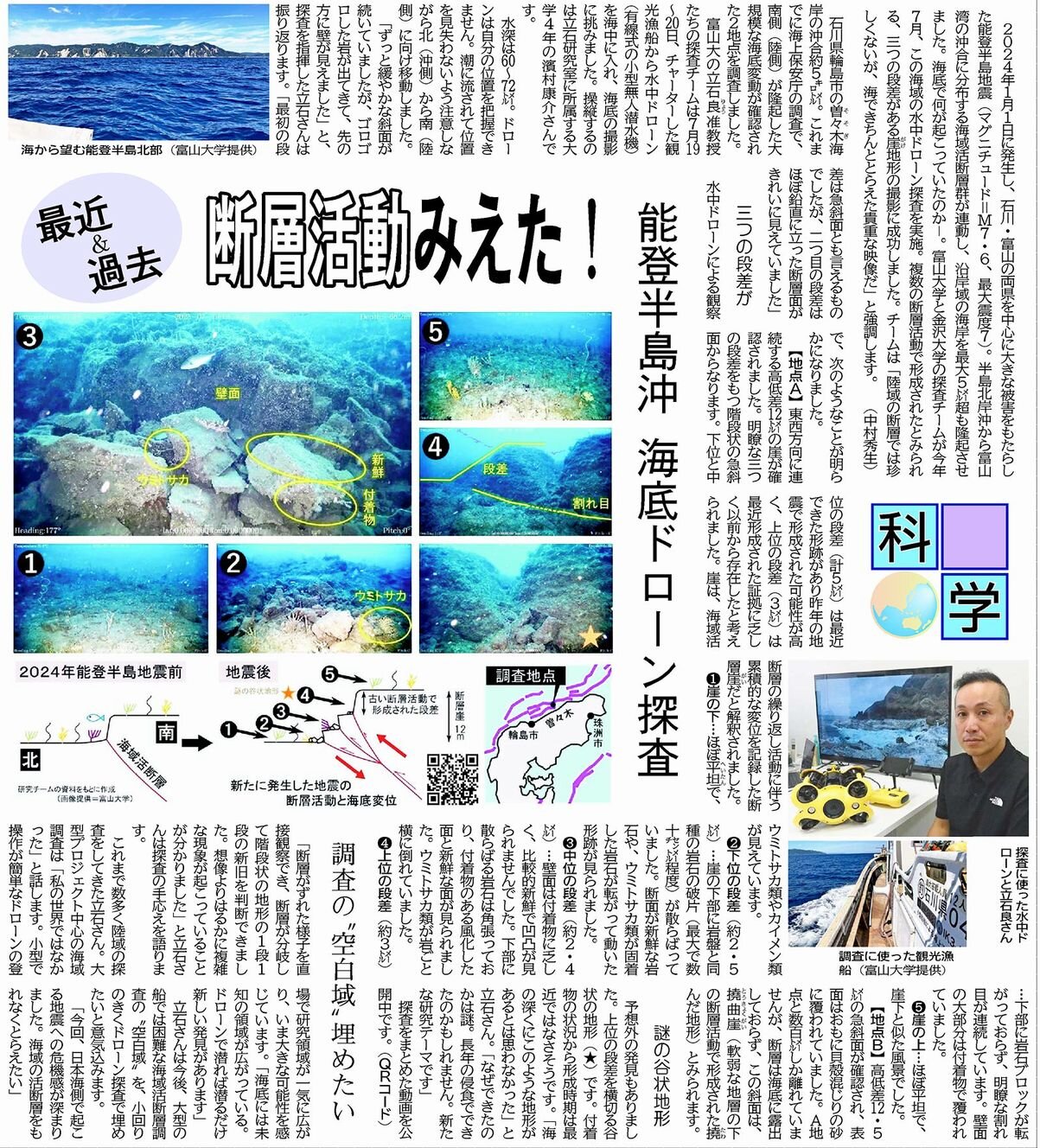 最近&過去 断層活動みえた! 能登半島沖 海底ドローン調査(9月14日付)