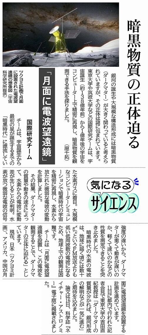 【気になるサイエンス】暗黒物質の正体迫る 「月面に電波望遠鏡」(9月17日付)