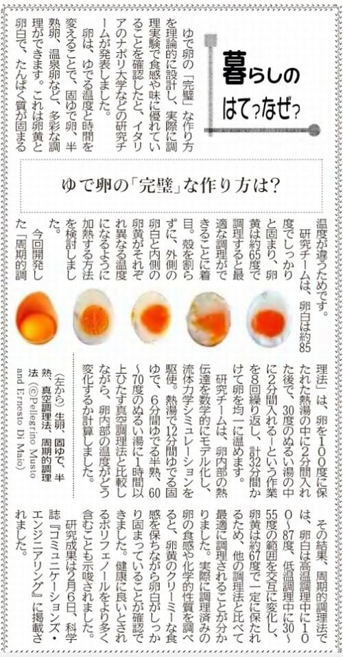 【暮らしのなかのはて? なぜ?】ゆで卵 「完璧」な作り方は?(3月16日付)