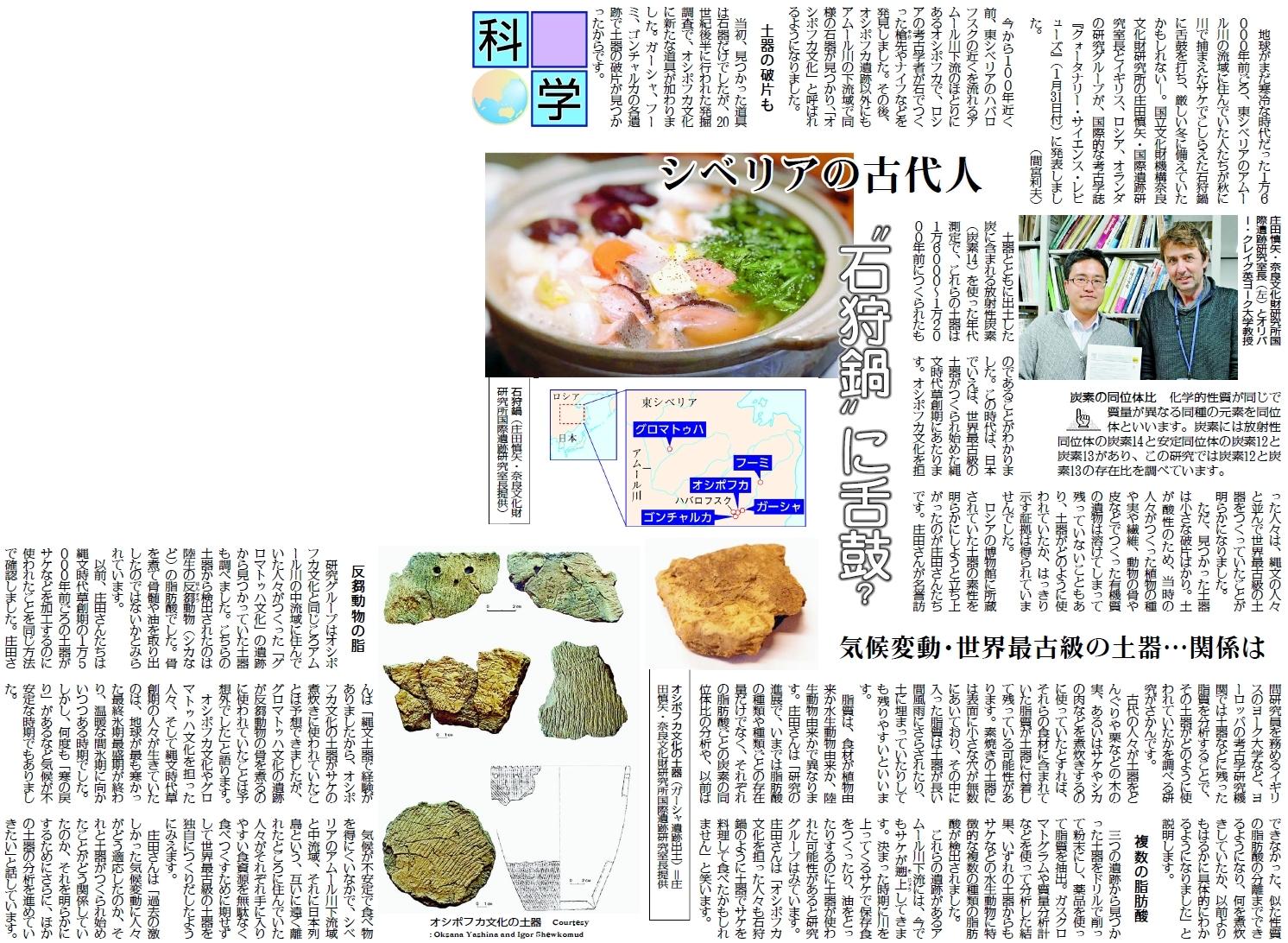 シベリアの古代人 〝石狩鍋〟に舌鼓?(2月17日付)