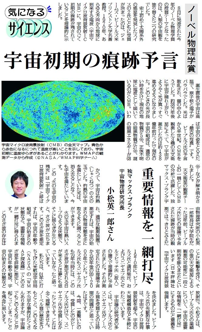 独研究所長 小松英一郎さんインタビュー「最古の写真」が描く最新宇宙像(上) 普通の物質は〝少数派〟(3月19日)