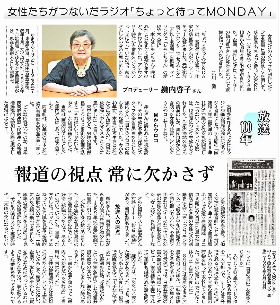 ☆「放送100年」「ちょっと待ってMONDAY」プロデューサー鎌内啓子さん