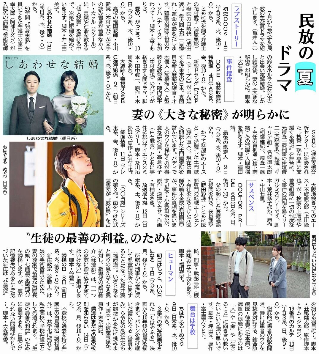 7月から放送する民放の主なドラマを紹介します。(紙面を見る)