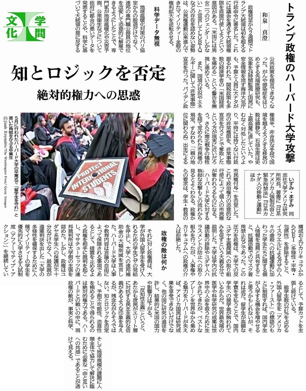 ■トランプ政権のハーバード大学攻撃 和泉真澄同志社大学アメリカ研究所所長の寄稿■