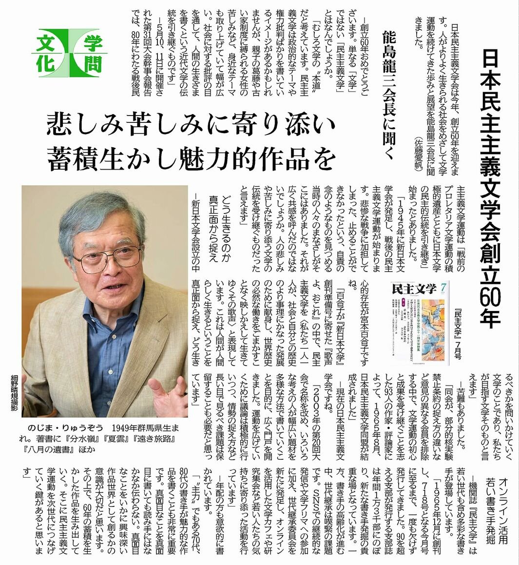 ■日本民主主義文学会創立60年 能島龍三会長にインタビュー■