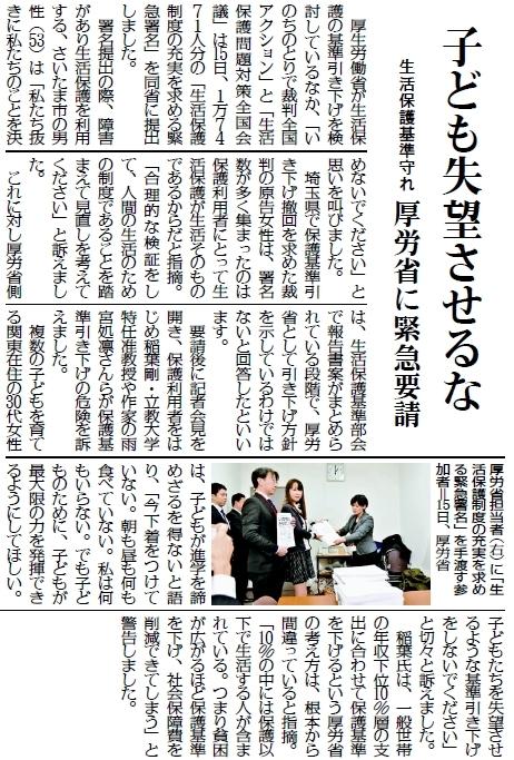 ・子ども失望させるな/生活保護基準守れ/厚労省に緊急要請(12月16日)