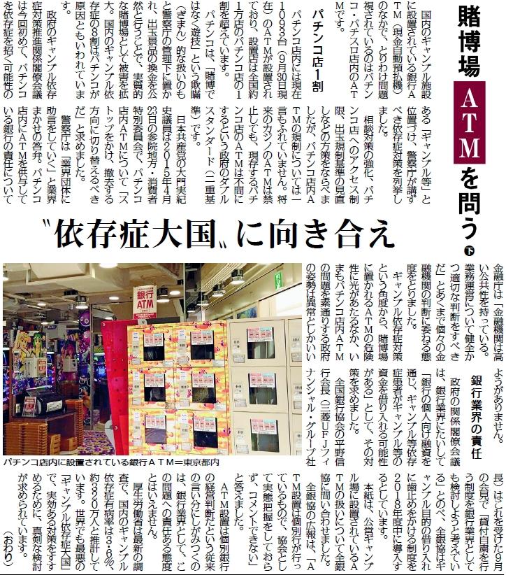 ・連載「賭博場ATMを問う(12月25日=連載上、26日=連載下)
