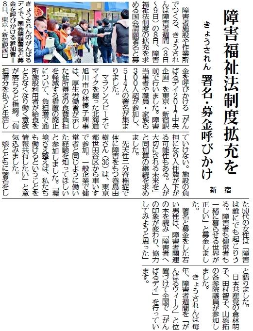 ・障害福祉法制度拡充を/きょうされん、署名・募金呼びかけ/新宿(12月09日)