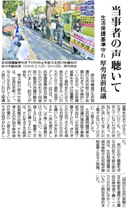 ・生活保護基準守れ/当事者の声聴いて/厚労省前抗議(12月13日)